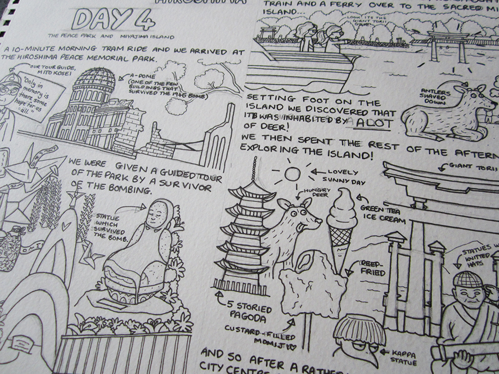 Since I returned from my whirlwind trip to Japan in March, I've been focussing on creating an illustrated compendium of mine and Emma's adventures there. Its been a long process as I decided to hand draw and watercolour everything - and each page is kind of jam-packed full of stuff! (Which is the way I like to do things, but obviously it takes a while to do)!